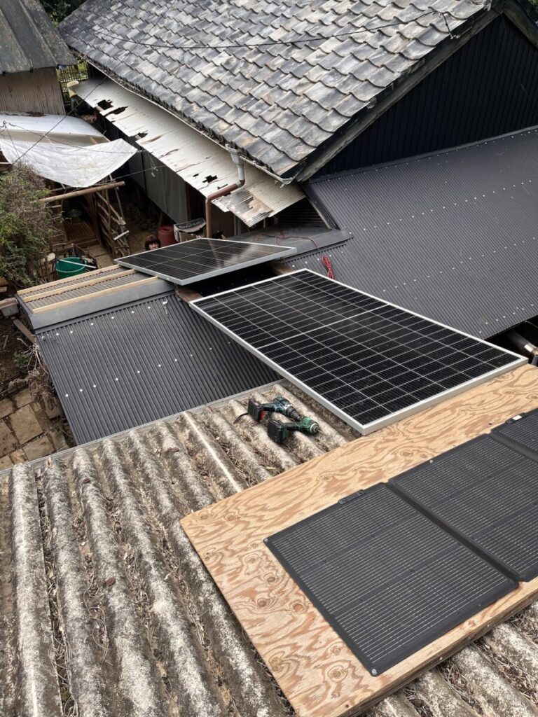 昼過ぎ、B.415Wパネルにかかる影の影響でAパネルと比べて50%近い効率低下が見られたため、痺れを切らしてパネルの移動を決行。これで明日の発電改善が大いに期待できる。