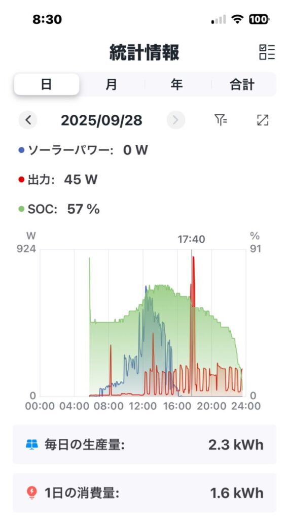 • 5:47 HI 自立運転を繰り返す(前日残量🔋40%)→ DK以外オフグリッド開始