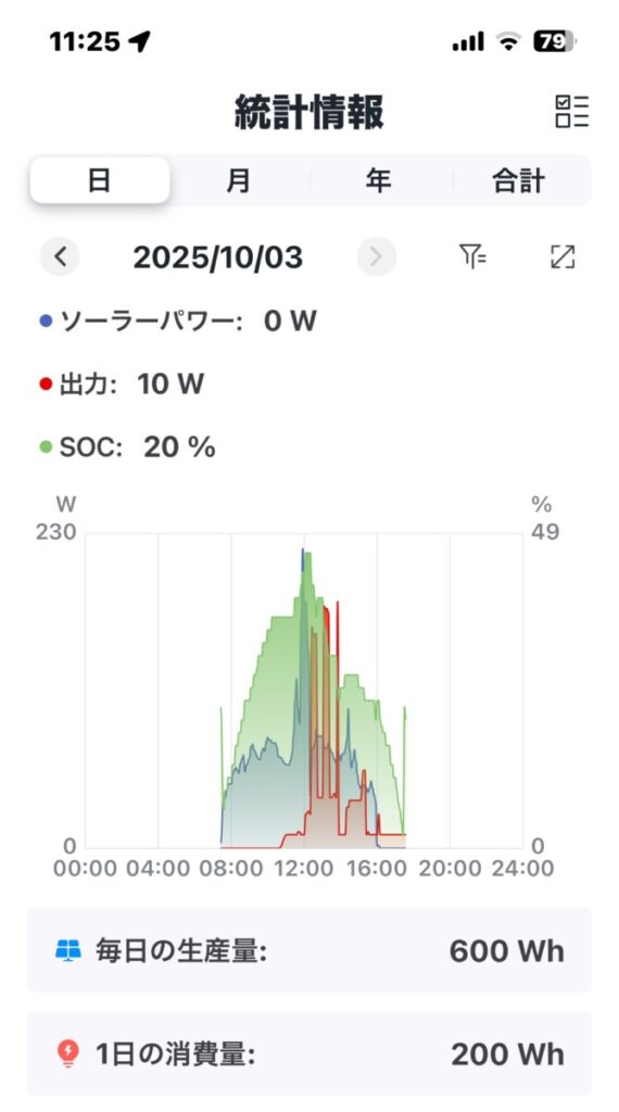 今日は厚い雲に覆われ、発電量は久々に1kWhを下回る結果となった。