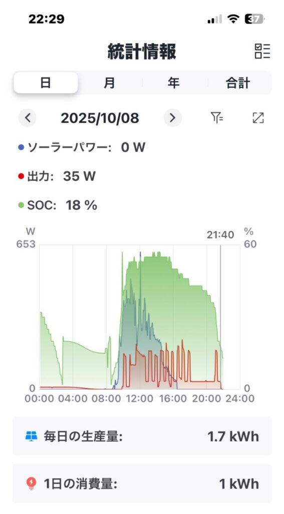 📓 2025/10/08 オフグリッドジャーナル 天気:🌤️ 発電量:1.92kWh 商用電力:エコキュート13.6+家電1.4=15kWh