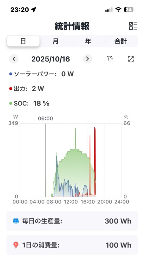 2025/10/16 オフグリッドジャーナル 天気🌧️時々☁️ 発電量0.3kWh 商用電力 家電2.1kWh 2025年10月18日 9:33 HI 32w DELTA 2 Max自立運転🔋29% 13:03 HI 47w DELTA 2 Max 20w 17:25 HI システム停止 DELTA 2 Max 🔋29%